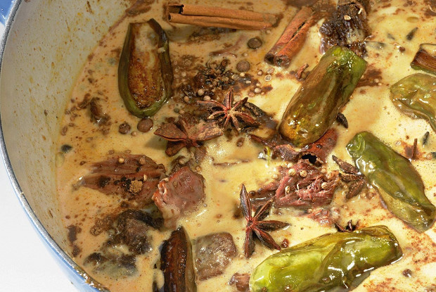 Обсмажування спецій. Для більш яскравого смаку массаман каррі, зіру та білий кардамон піддають термічній обробці протягом декількох хвилин.