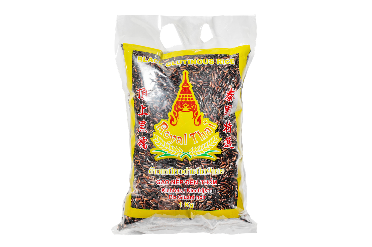 "Royal Thai Black Glutinous Rice" - це азіатський продукт, що представляє собою чорний клейкий рис. Цей рис є відмінним від звичайного білого рису, оскільки він має темний колір через високий вміст антоціанів, які є природними пігментами.
